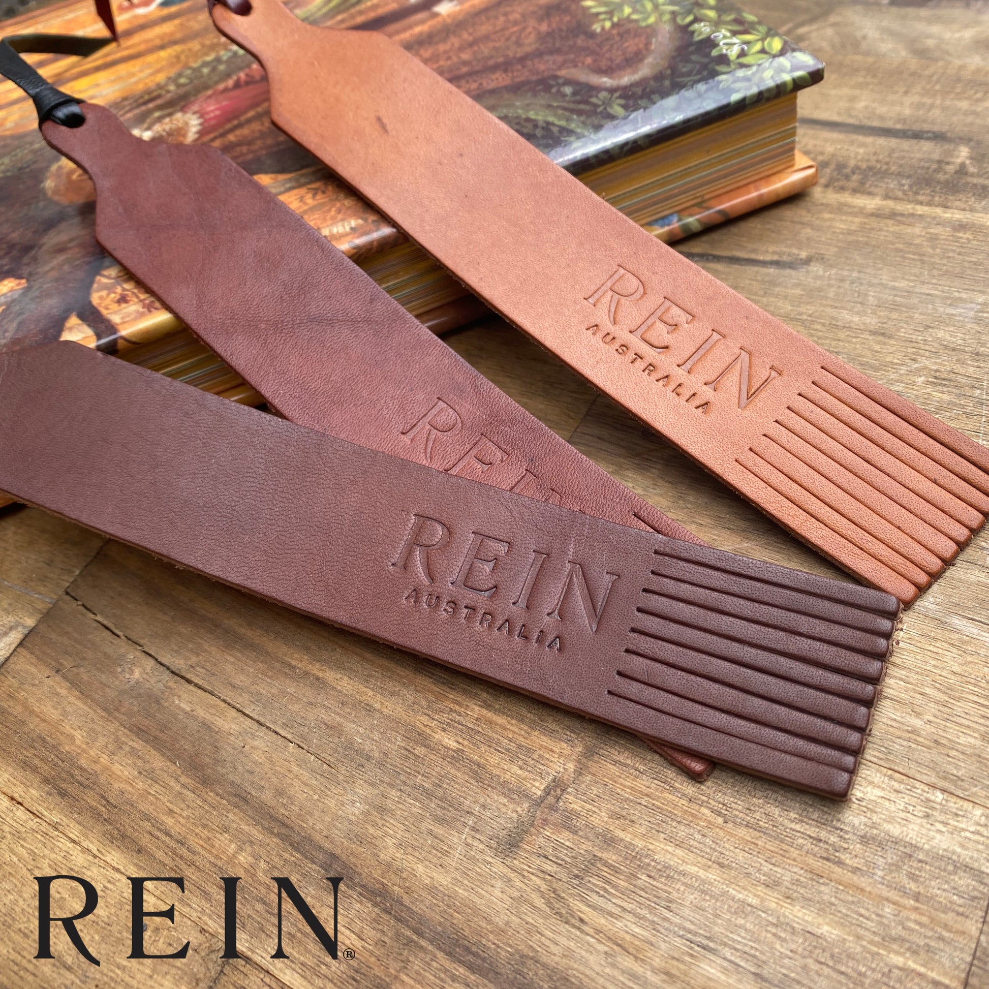 A small batch of book marks from REIN®, made of beautiful full grain cow hide leather. Finished with a kangaroo skin tab or crystal - please double check your selection before ordering.