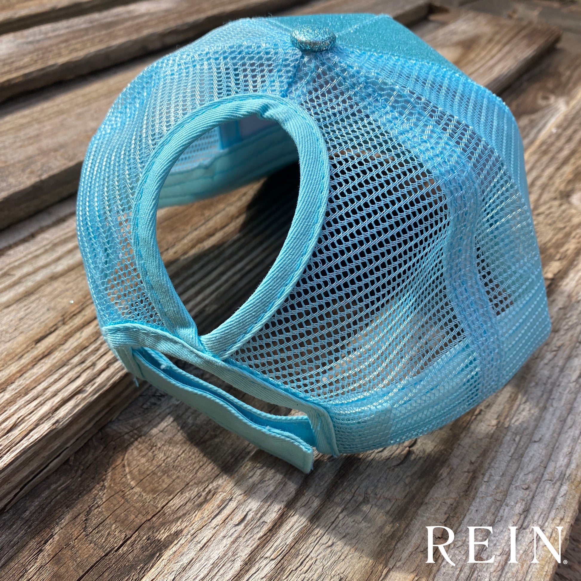 Glitter ponytail cap with leather debossed REIN® Logo